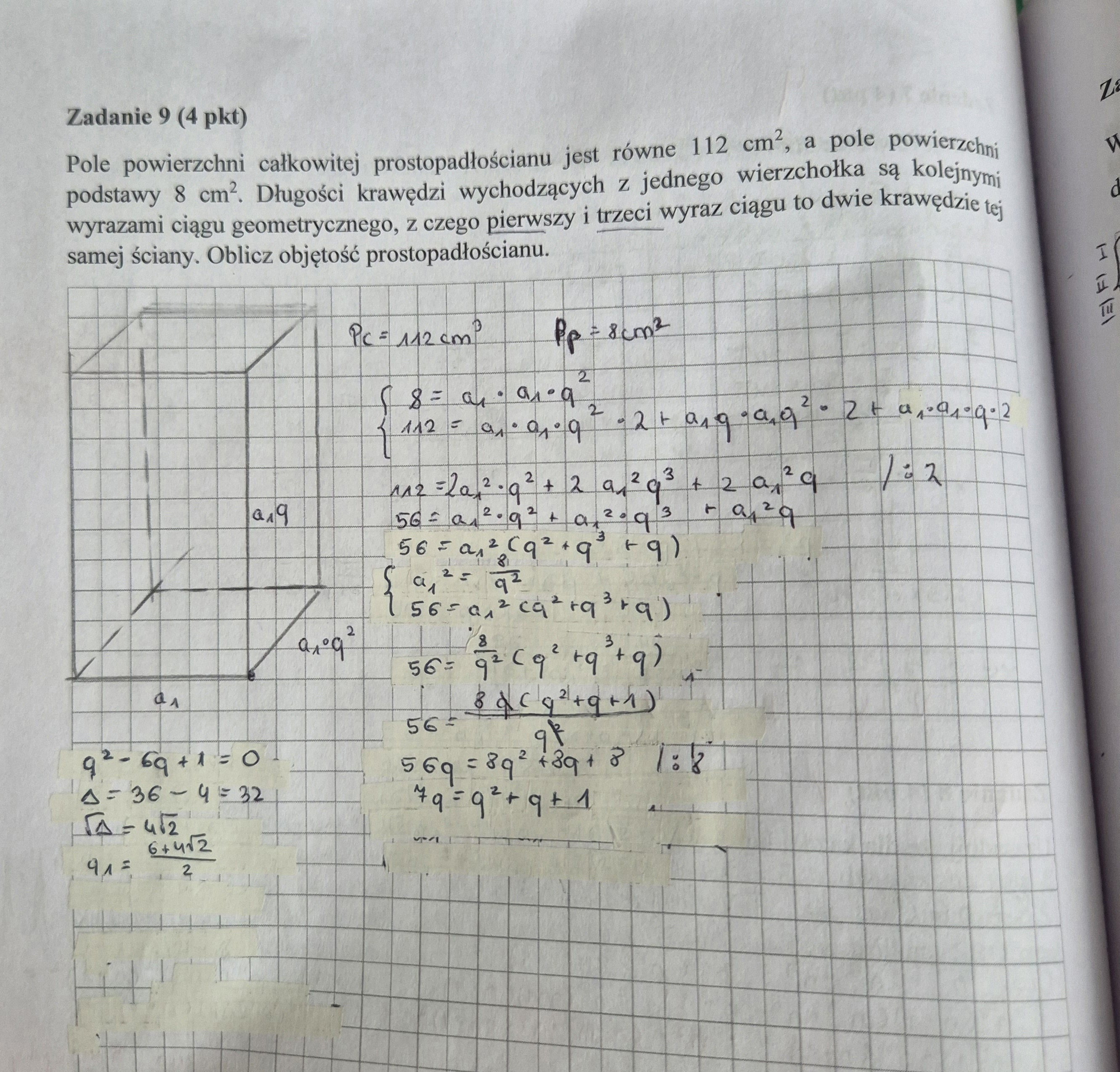 A może ściana to ściana boczna, wtedy krawędzi podstawy powinny być a1 i a1q. Ma to znaczenie dla pola całkowitego i pola podstawy.